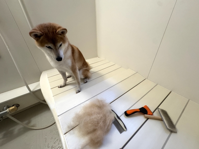 - 換毛期はスリッカー+コームでしっかり下毛を抜く